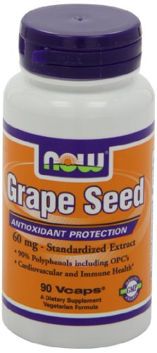 NOW Grape Seed Antioxidant 60mg, 90 Veg Capsules(Pack of 2)