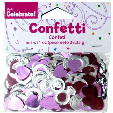 Studio : Kole Imports Publisher : Kole Imports Binding : Kitchen Product Description Bride confetti can be placed inside invitations, thank you cards or sprinkle on tables for shimmering accents. Confetti consists of hearts and wedding rings. Comes packaged inside a poly bag with header card. Each bag contains about 1 ounce of confetti. 0