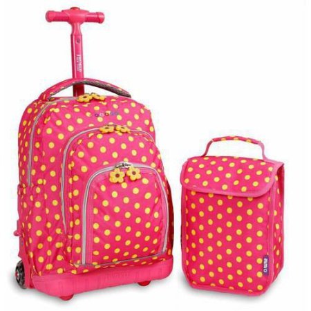 -. Feature : Telescoping handle Air mesh cushioned shoulder strap / Side pockets Front pocket organizer / Matching lunch bag / Kids' rolling bag patterns: pink buttons, sea world or floret / Product Dimensions (L x W x H): 6.00 x 12.50 x 16.00 Inches
