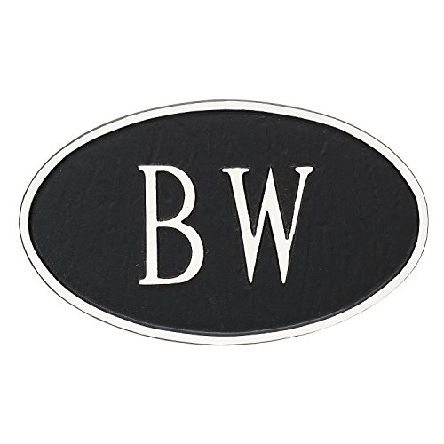 Montague Metal Prestige Arch Petite Address Sign Plaque with Lawn Stake, 5.5" x 9", Black/White