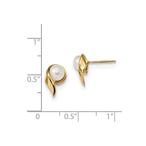 Solid 14k Yellow Gold 5-6mm White Button Freshwater Cultured Pearl Post Earrings
