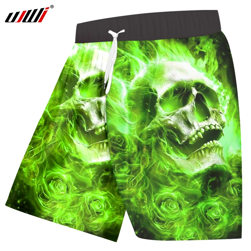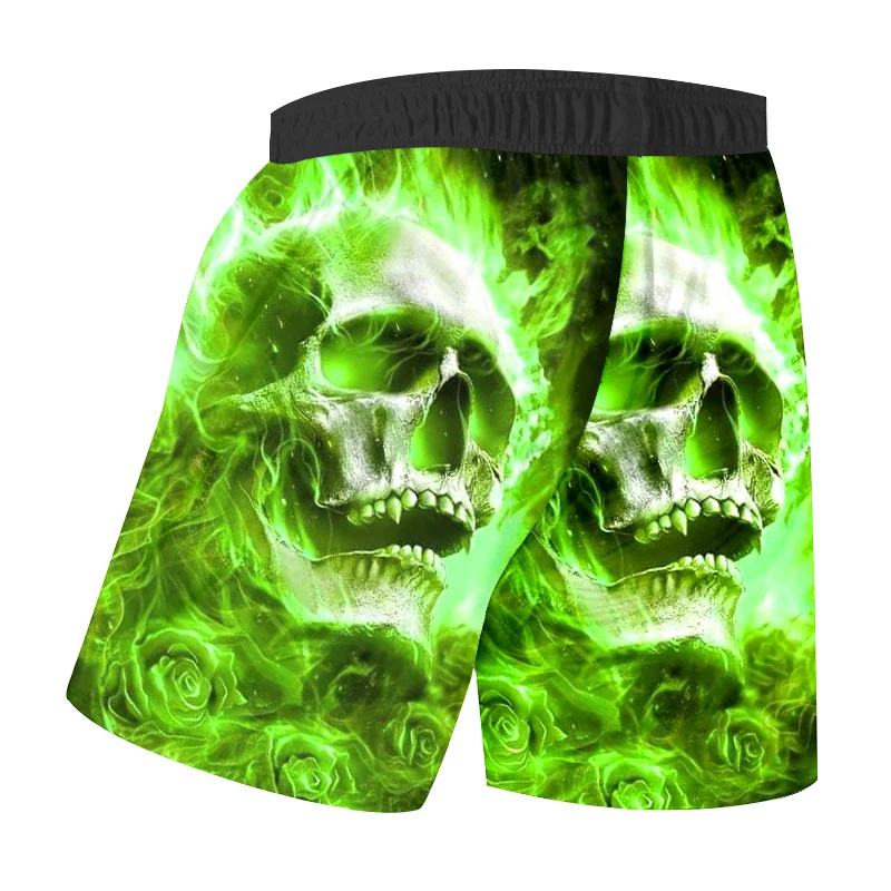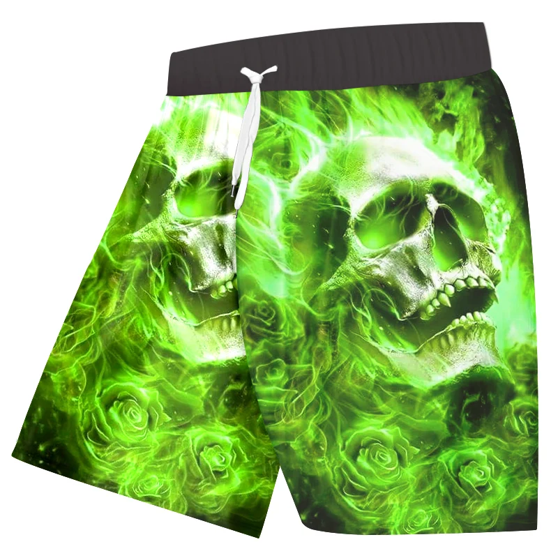 Printing Pattern:Green Fire Skull 3D Print Mens Shorts