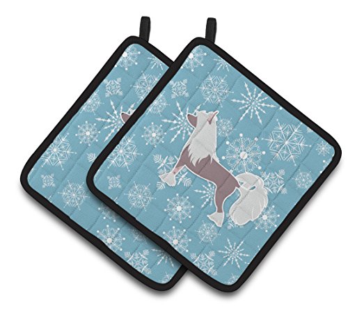 Caroline's Treasures Winter Snowflake Chinese Crested Pair of Pot Holders BB3543PTHD, 7.5HX7.5W, Multicolor