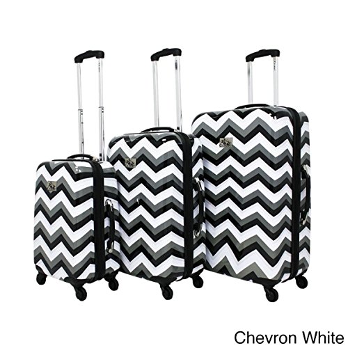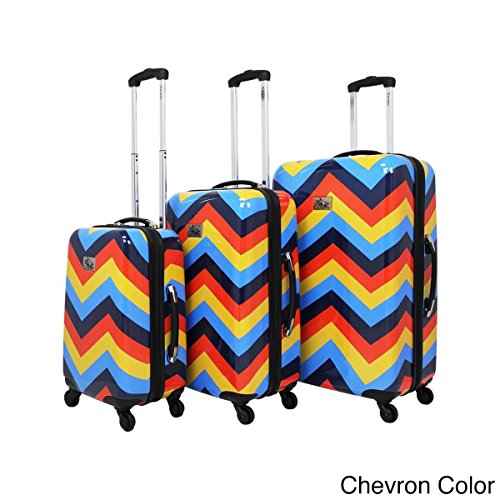 Studio : Chariot Luggage Publisher : Chariot Luggage Product Description Where form meets function. This set combines style, color,durability and lightweight ease to simplify every trip you take.Strong polycarbonate, large main compartments, full-featuredinteriors and spinner wheel designs put this collection at the topof your packing list. 360 degree spinner wheels for maximum mobility and maneuvering Lightweight design ideal for the traveler on the go Expandable feature adds 25-percent extra packing space when needed Interior features dual compartment to maximize packing Push-button self-locking internally stored retractable handle system Ergonomic and comfortable padded top and side grip handles Silver pewter hardware Fully lined interior Set includes: One (1) 20-inch carry-on, one (1) 24-inch upright, one (1) 28-inch upright Materials: Polycarbonate, ABS Wheel type: Four 360 Spinner wheels Dimensions and weight: 20-inch carry-on: 20 inches high x 13 inches wide x 9 inches deep, 6.4 pounds 24-inch upright: 24 inches high x 16 inches wide x 10 inches deep, 8.5 pounds 28-inch upright: 28 inches high x 19 inches wide x 11 inches deep, 9.8 poundsThe digital images we display have the most accurate colorpossible. However, due to differences in computer monitors, wecannot be responsible for variations in color between the actualproduct and your screen. Type: Lightweight, Carry On, Fashion, Hardsided, Upright Material: ABS, Polycarbonate Pattern: Chevron Interior Pocket: 2 Feature: Expandable, Locking, Multi-Compartment, Spinner, Telescoping Handle Exact Color: Multi-color Color: White, Multi 0