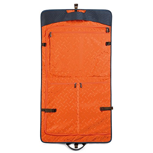 Product Description Stylish and functional this travel garment bag, designed in Italian leather and nylon fabric by Giorgio Fedon 1919. This luxury travel garment bag is made in cowhide leather and lightweight and strong nylon fabric. It has a top leather carrying handle with a large exterior front zipped leather compartment. The interior is lined in Fedon signature orange fabric and has 3 zipped pockets and hanging hook. The bag comes with a handy detachable shoulder strap. 0