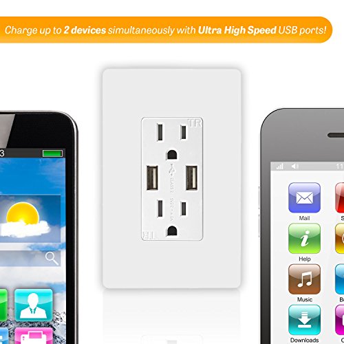 Top Greener TU2154A-W 4A High Speed USB Charger Receptacle 15A Tamper-Resistant Outlet , Screwless Wall Plates, White (Pack of 10)