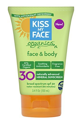 -. Binding : Misc. -. Brand : Kiss My Face -. Label : Kiss My Face -. Manufacturer : Kiss My Face -. PackageQuantity : 2 -. ProductGroup : Beauty -. ProductTypeName : BEAUTY -. Publisher : Kiss My Face -. Studio : Kiss My Face -. Title : Kiss My Face Sun Care Organic Face & Body Lotion (SPF 30) 3.4 fl. oz. (a) - 2pc