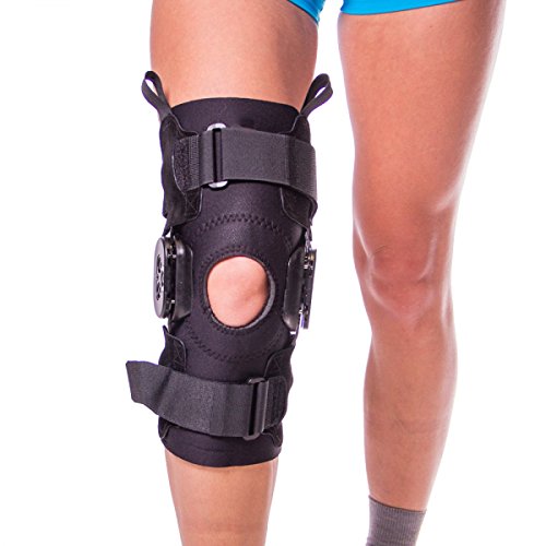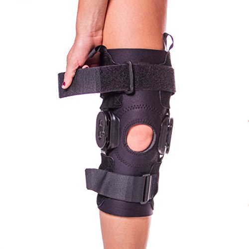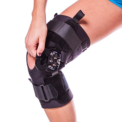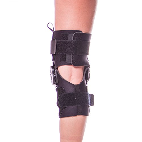 -. Feature : Stabilizes the knee joint and protects against re-injury, while also allowing one to get back to normal movement and athletic activity sooner / Features a lightweight compression sleeve below knee to reduce inflammation and encourage rapid healing / Hinges allow one to control one's range of motion to 0, 15, 30, 60 or 90 degrees / Cutouts over kneecap and at back of knee to take pressure off knee and improve breathability and flexibility / Available in S-4XL. Measure the circumference around the following points: 6" above kneecap, middle of kneecap, and 6" below kneecap