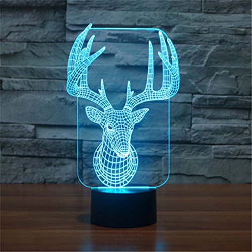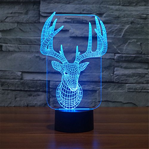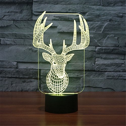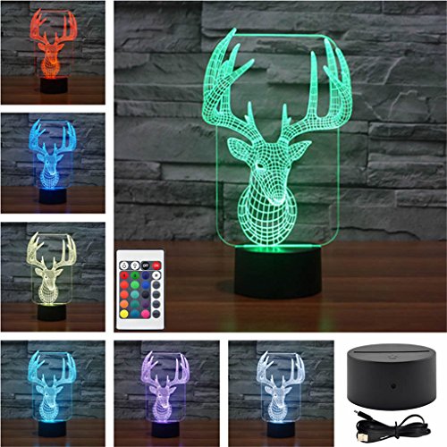 Mini Remote Deer Head Xmas LED Colorful Acrylic 3D Visual Touch Table Lights Art Decor Holiday Creative Desk Lamps IR147