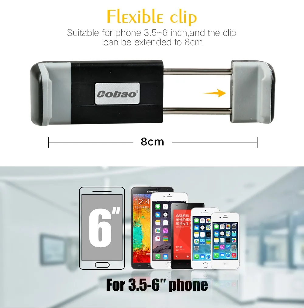 2.Compatible with any mobile width 5.5~8cm,such as Iphone 5s,6,6 plus,6s,6s plus,Samsung Galaxy s4 s5 s6