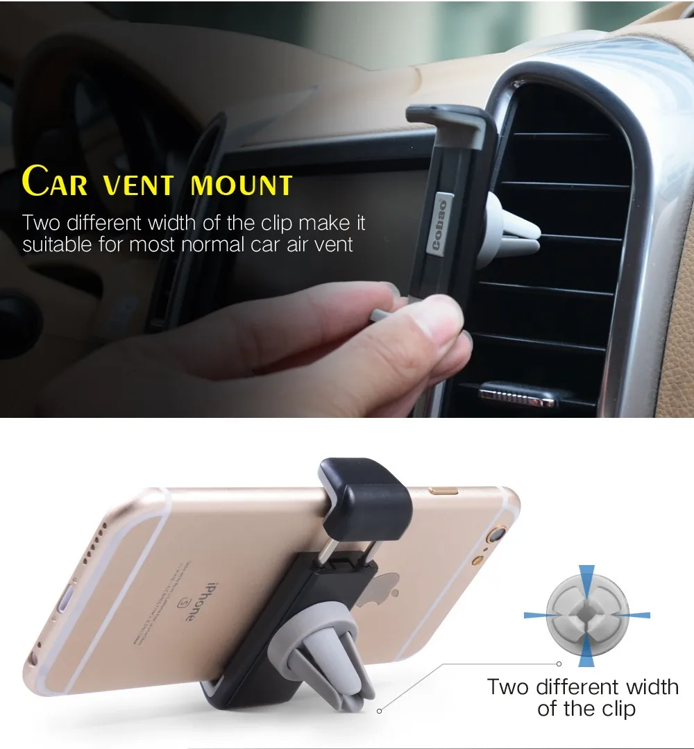 Universal car mobile phone holder stand air vent mount holder for Iphone 5 5s 6 6s plus Galaxy S5 S6 S7 Cobao brand 360 rotating