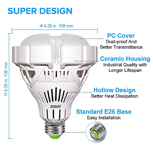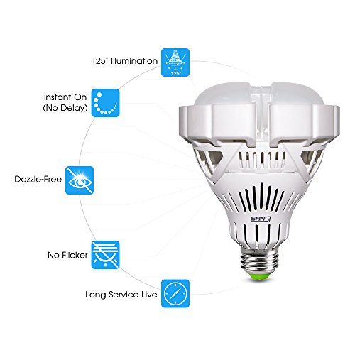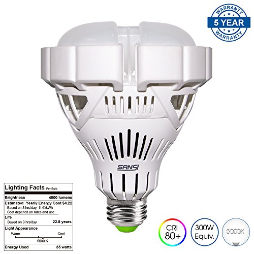 SANSI BR30 35W (300W Equivalent) LED Floodlight Bay Light Bulb, 4000lm, 5000K Daylight, CRI 80+, E26 Medium Screw Base Garage Basement Factory Warehouse Barn Sport Hall Security Task Lighting