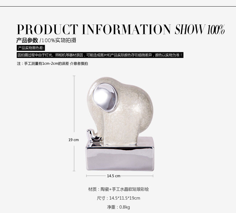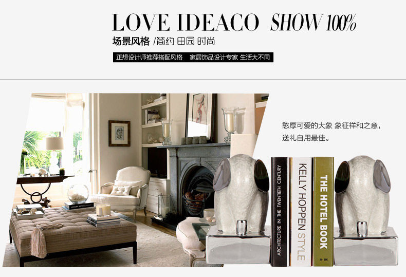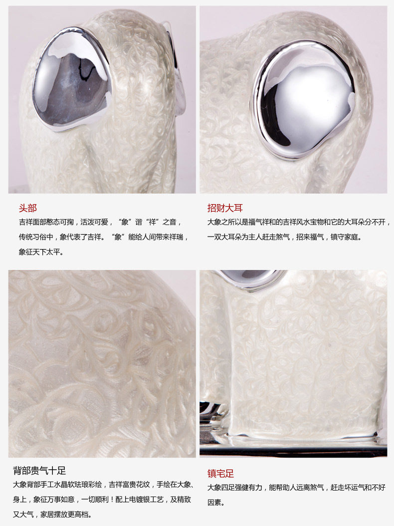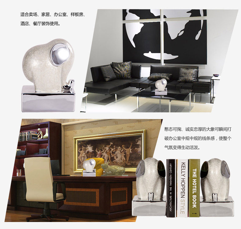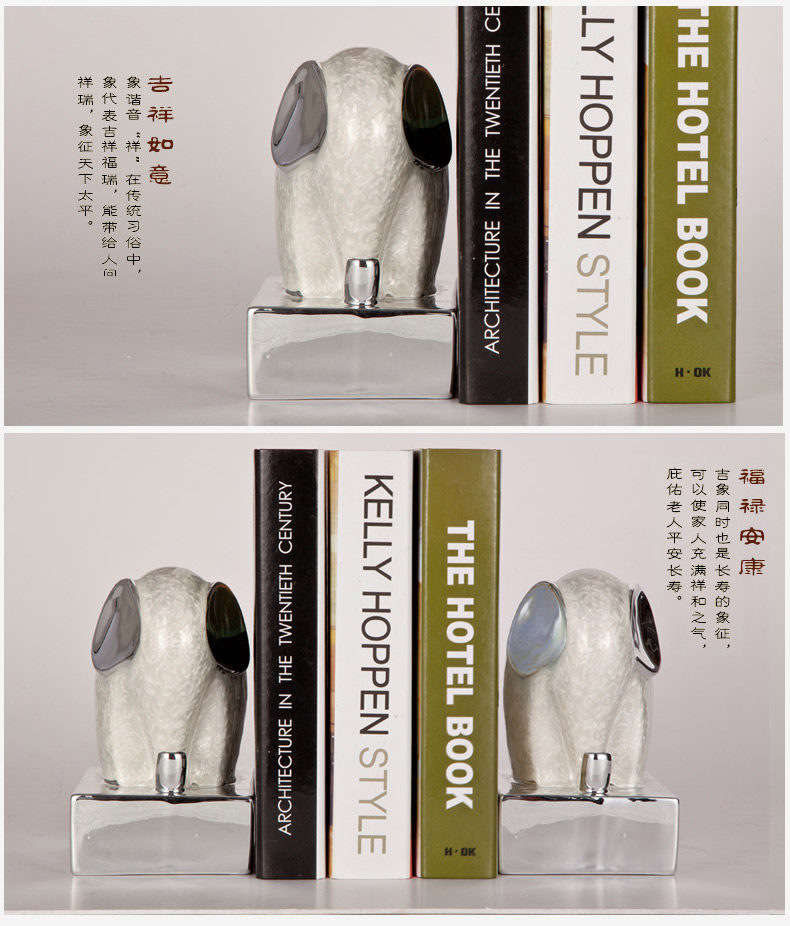 Crystal soft furnishings ceramic enamel white elephant bookend bookends ornaments crafts office supplies Paperweight