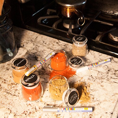 Cohas Chalkboard Labels for Libbey 4.5 Ounce Glass Spice Jars includes Liquid Chalk Marker and 48 Labels, Fine Tip, White Marker