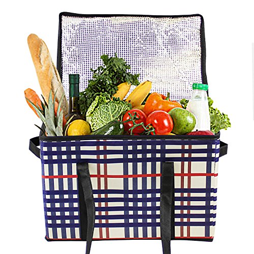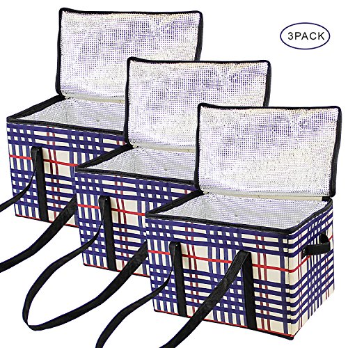 Jerry & Maggie - Insulated Food Carrier Delivery Reusable Grocery Box Bag with insulated lining Reinforced Food Container saver (3 packs)