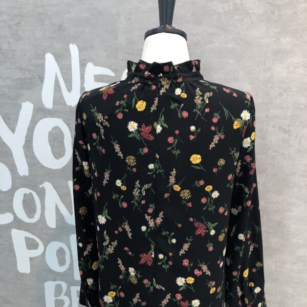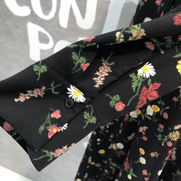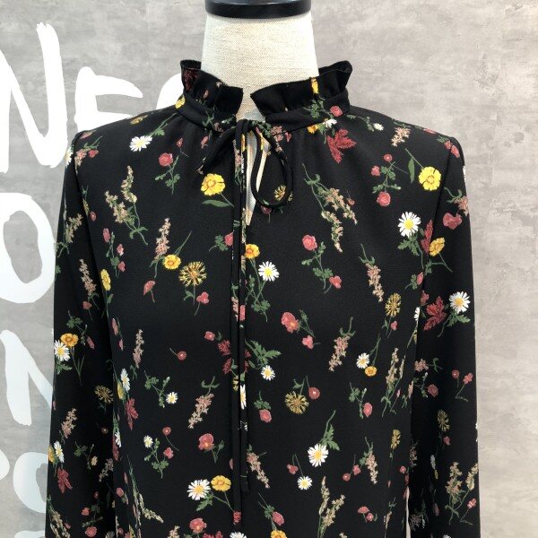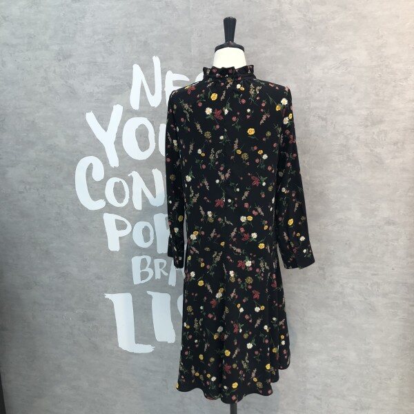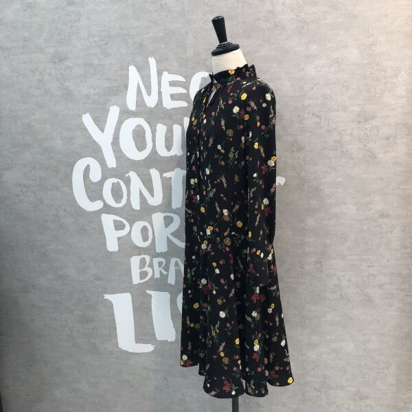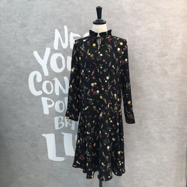로우 웨이스트 실루엣이 걸리시하며 프릴 네크라인에 플라워 프린트가 페미닌한 원피스입니다