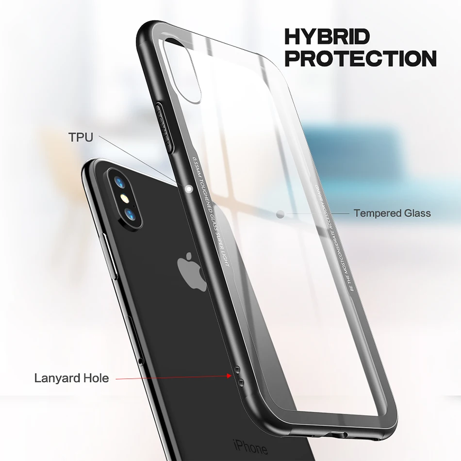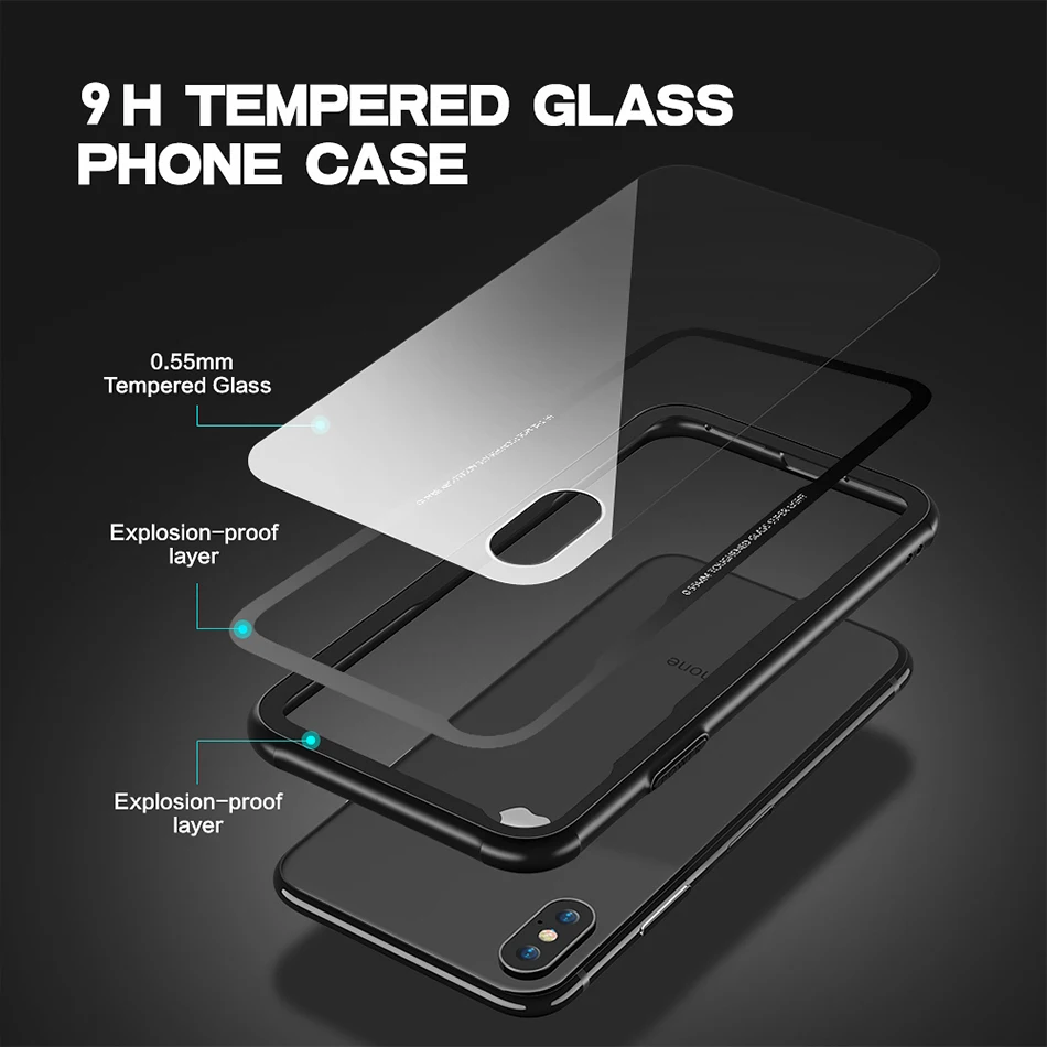 Features:Tempered Glass Back Cover Soft Edge Phone Case For iPhone