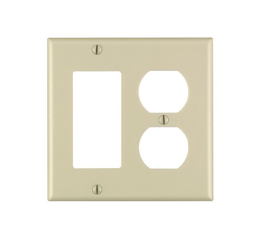 Leviton 80455-I 2-Gang 1-Duplex 1-Decora/GFCI Device Combination Wallplate, Standard Size, Thermoset, Device Mount, Ivory