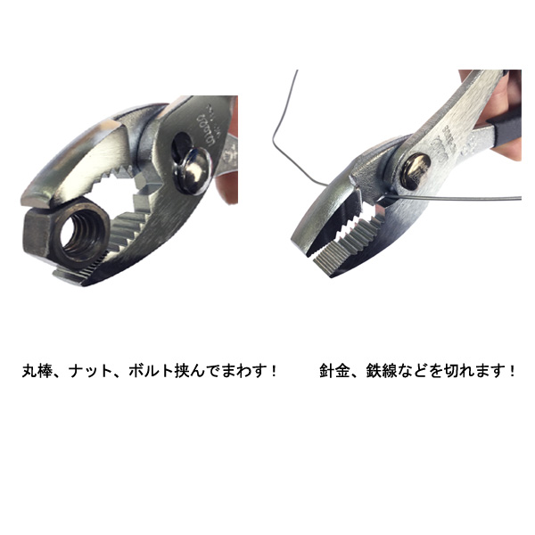 ●2段階に口巾を変えることができ、しっかりと物をつかんだり、回したりできる工具です。