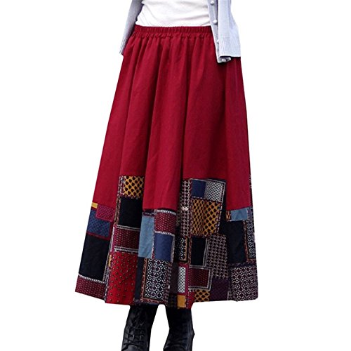 -. Title : Yangelo スカート 裏地付 厚手 レディース ロング マキシ 丈 上質 綿 麻 ウエストゴム フレア Aライン レトロ パッチワーク 森ガール 秋 冬 春 無地