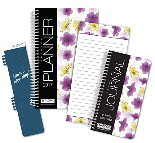 -. Title : Fashion Daily Planner Set - Includes 14 Month 2017 Calendar Year (5.5" x 8") -- Bonus Clip-in Bookmark -- 3.5" x 6.5" Bonus Journal -- 4"x8" Bonus Notepad [Watercolor Flowers]