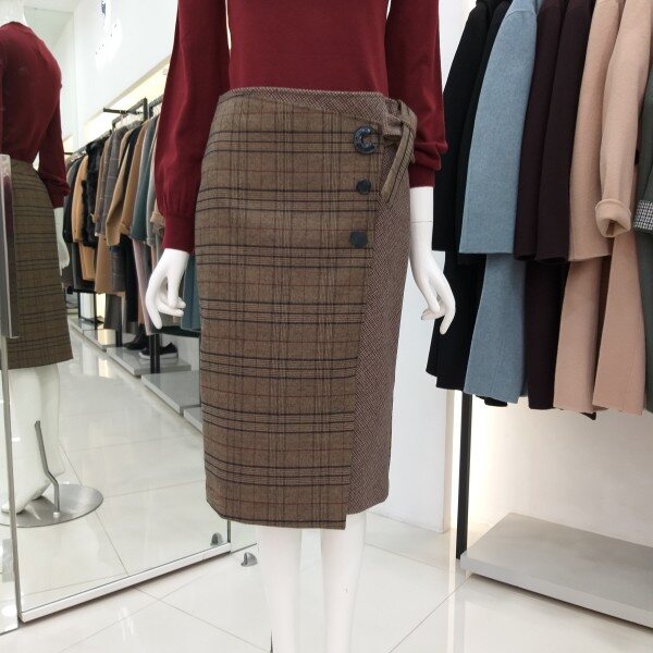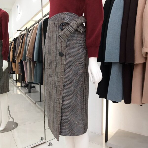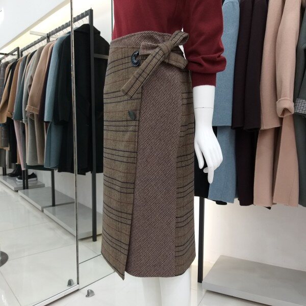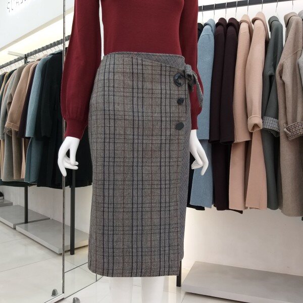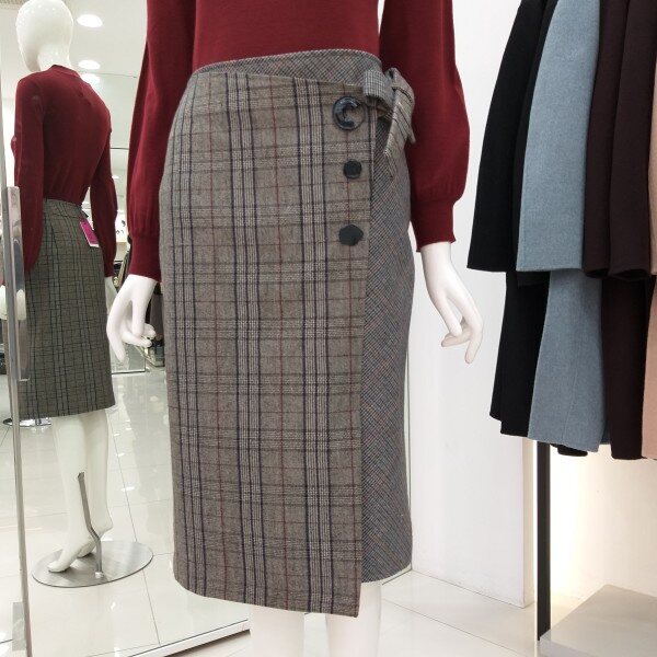 티렌 H라인 체크리본 스커트입니다 랩느낌의 도톰한 스커트로 모든옷에코디하기좋아요~~총장 66cm