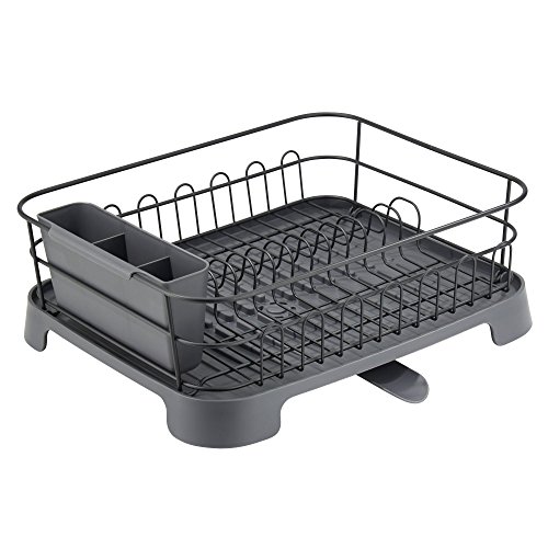 Studio : MetroDecor Publisher : MetroDecor Product Description Keep kitchen dishes clean and dry with the Kitchen Dish Drainer Rack with Swivel Spout from mDesign. The dish drying rack makes it easy to air-dry dishes right on kitchen counter tops. The rack has 12 slots for drying plates and a silverware caddy to keeps forks, knives and spoons separate. Rungs around the outside make it easy to dry glasses. Don't worry about water pooling on the counter, just adjust the swivel spout 360 degrees to send excess water straight to the drain! 0