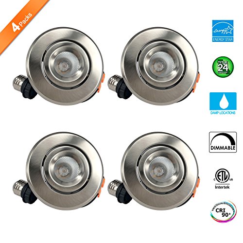 JULLISON 4 Inch LED Recessed Down Light, 30°Adjustable, Gimbal, Dimmable,120V, 7W, 500LM, 60W Equivalent, 3000K, CRI90+, 26°Beam Angle, Energy Star, Title 24, ETL Listed, Satin Nickel (4 Packs)