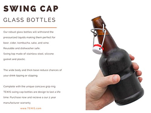 Keeps Content Fresh Tasting : The swing top cap is sturdy, has a steel wire assembly and thick rubber gasket that allows a complete seal. This protects the content from going stale. This mechanism is simple and effective, and makes the bottle easy to open and close