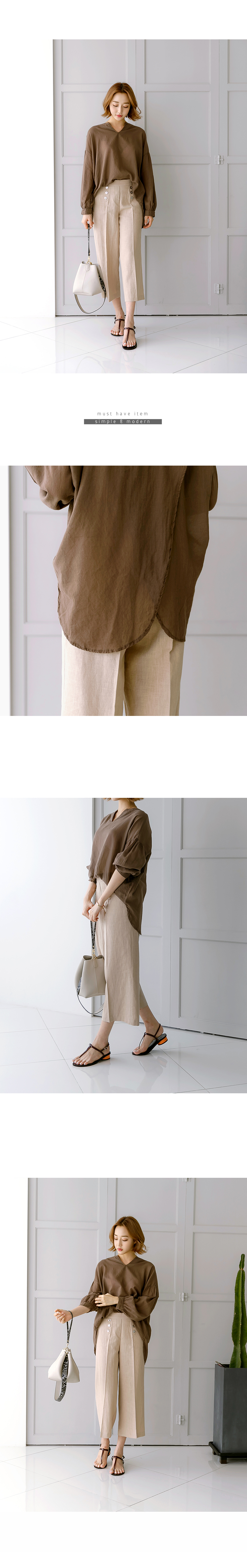 마린 버튼 린넨팬츠