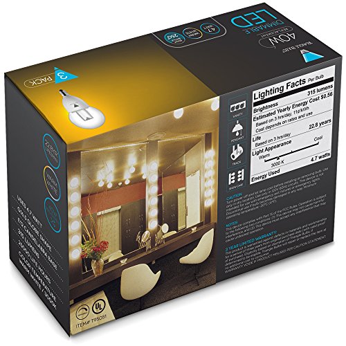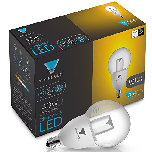 Triangle Bulbs T95051-6-VA, LED 40 Watt Equivalent Dimmable G16.5 Light Bulb, Candelabra Base, Warm White, 6 Pack