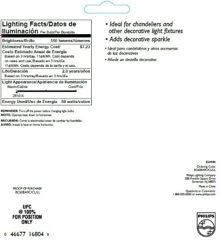 Philips 167213 60-Watt BA9 Clear Decorative Candelabra Base Candle Light Bulb, 4-Pack