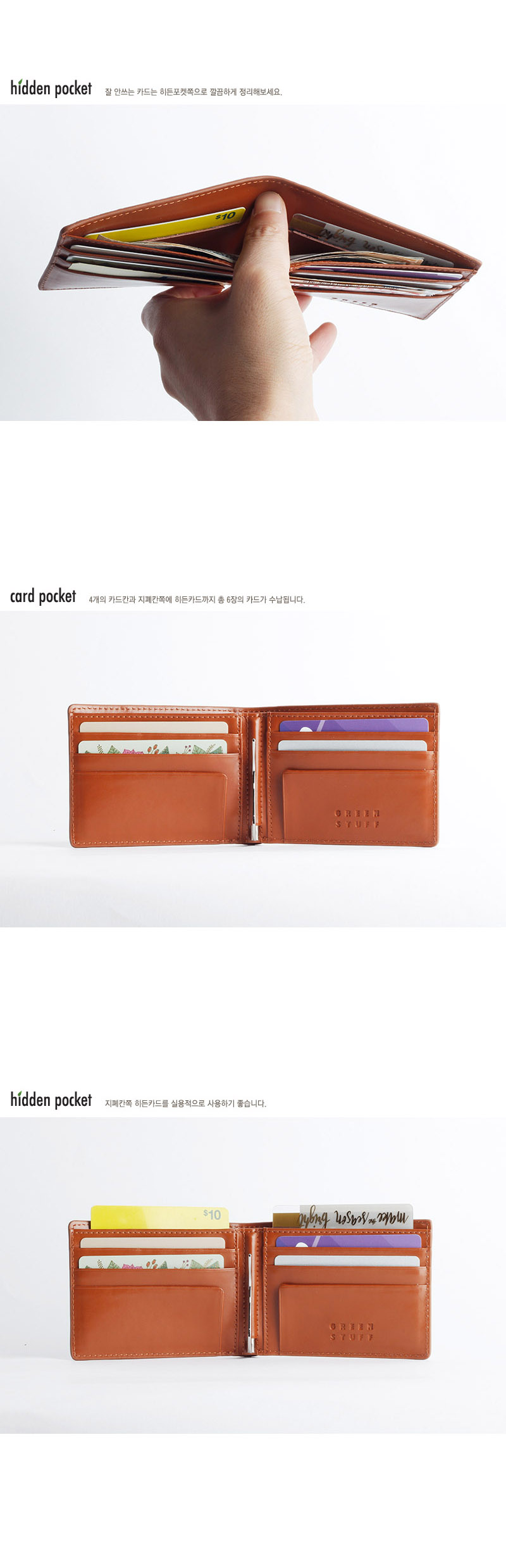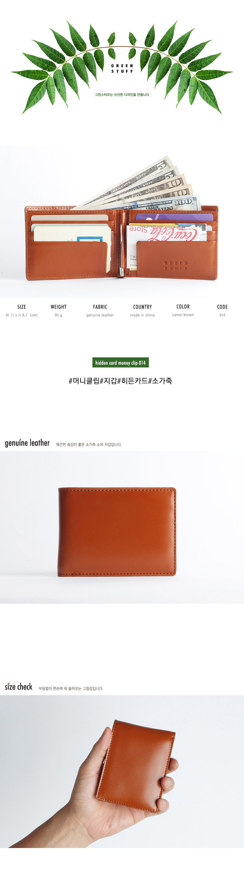상품명 : 히든카드 소가죽 머니클립 014 [카멜 브라운]