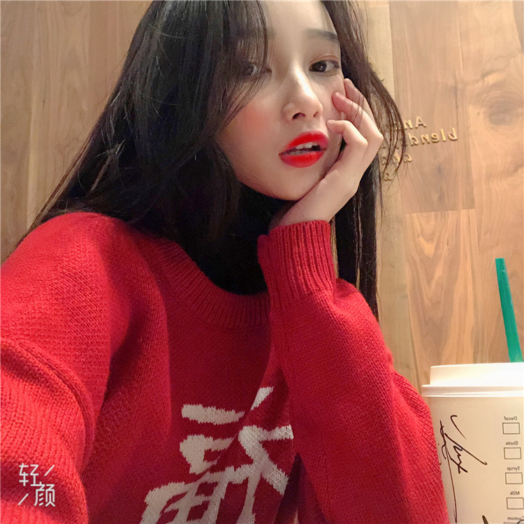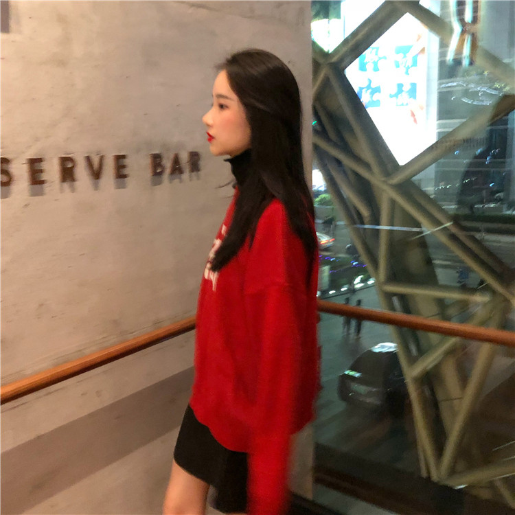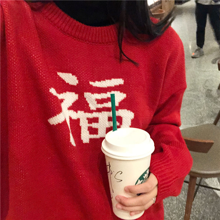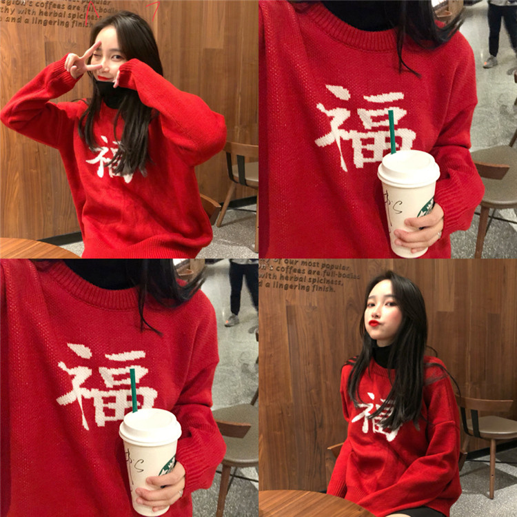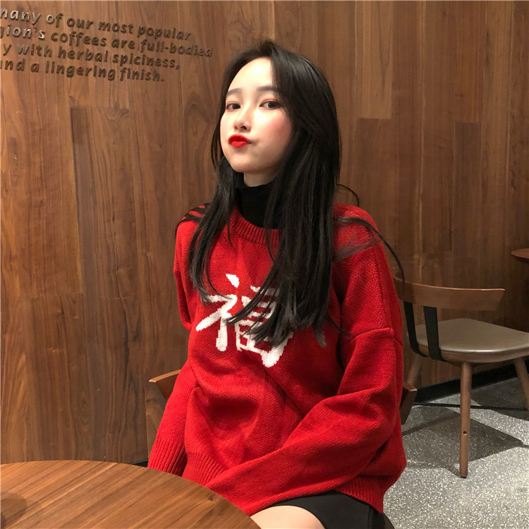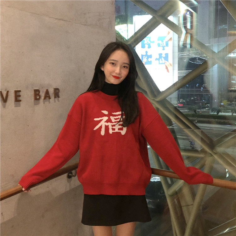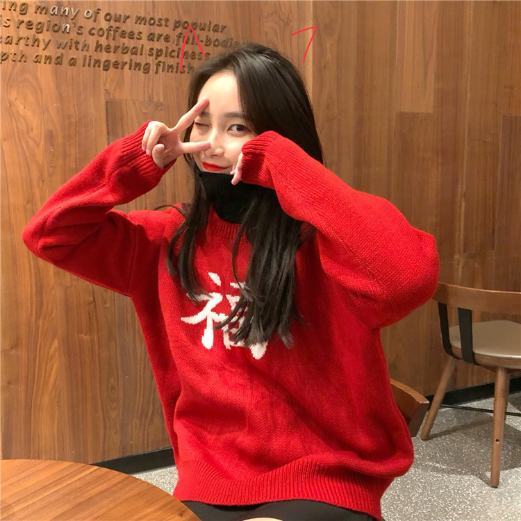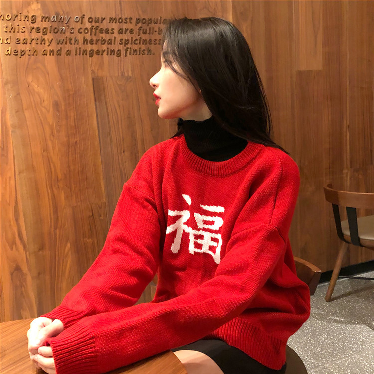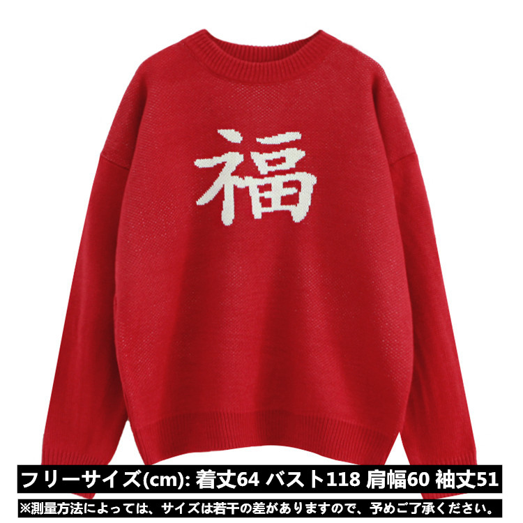 ★ニット レディース 長袖 冬 秋物 ゆったり 大きいサイズ セーター プルオーバー ハイネック 無地 体型カバー トップス 福 文字 19010908★