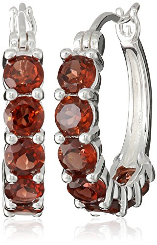 Sterling silver hoop featuring row of prong-set faceted gemstone rounds