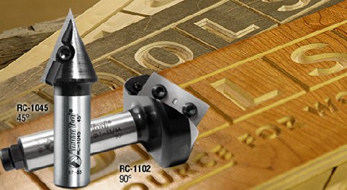 Amana Tool AMS-150 4-Pc 3D CNC Signmaking, Lettering & Engraving Insert SC 45, 60, 90 & 120 Deg x 1/2 SHK V-Groove Router Bit Set