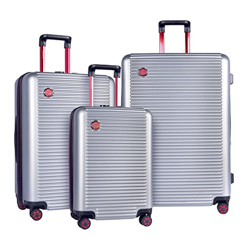 (S E)/Accessories/Luggage, Bags Travel/DIRECT FROM USA/3 Piece Metallic Solid Stripes Themed Spinner Lightweight Expandable Luggage Set Suitcases, Hor...