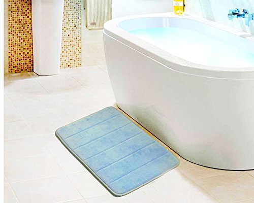 Doupoo Memory Foam Bath Rug Non Slip Bath Mat Soft Coral Velvet Shower Carpet (Bath Rug 15.7" X 23.6", Blue)