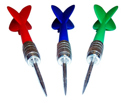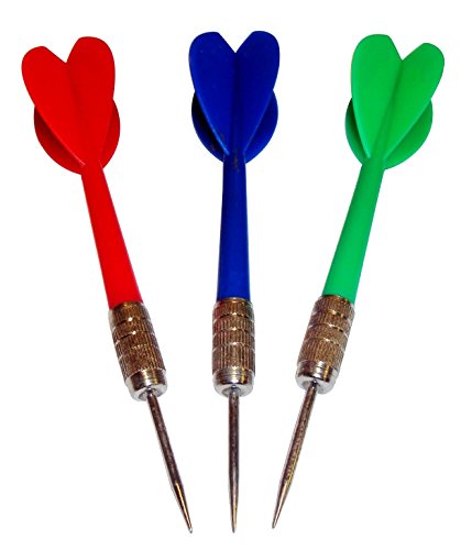 12 Pack Carnival Balloon Darts Steel Tips, Plastic Flights, 3 Assorted Colors.