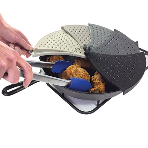 Open only one section of the spinout to check or flip food while leaving the rest of the pan covered. Also a great feature when using an immersion blender to help contain splatter