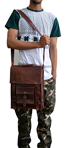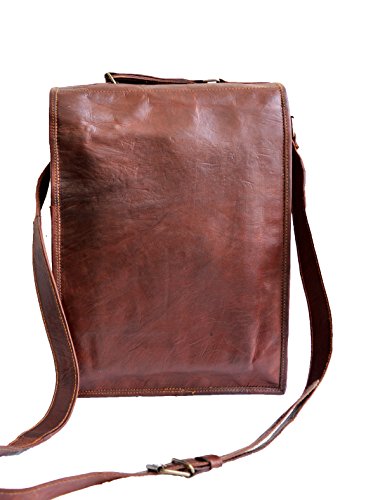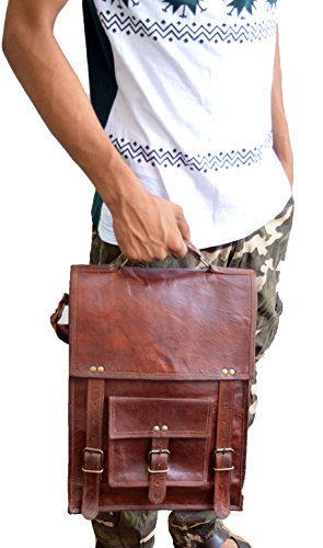 -. Feature : Dimensions : (approx) 15 X 11 X 4.5 inch. (height , breadth, inner depth ) - 38 cm X 27.9 cm X 11 cm . 25 inch shoulder drop (54 - 57 inch / 127 cm adjustable sling). Shipping Via DHL even on paying for standard shipping (delivery time 4 - 6 days usually) / Can be used as an office bag Has a partition for laptop tow zippered pockets at inner front and rear.Laptop padded sleeve included 15" Inch / Comes with brass polished buckles , 100% rust free. adjustable sling. Vertical leather laptop bag Can hold 15" Laptops. / material : high quality leather Has an inner stitched canvas for durability. Laptop handmade padded sleeve Inchluded. / This is a genuine handmade item, if any seller selling the identical bag with same UPC is found, will be reported under trademark violation to Amazon