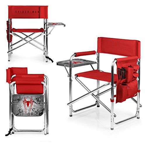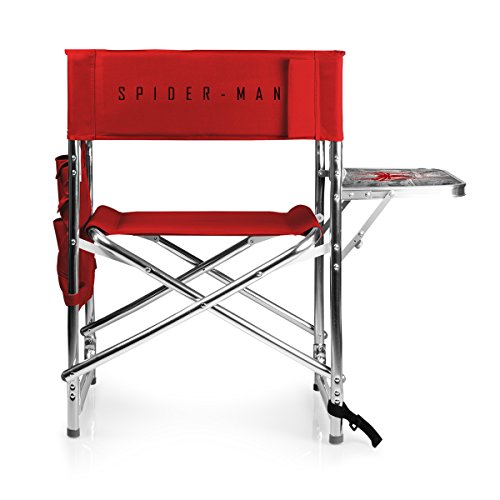 Studio : Picnic Time (Sports-non license) Publisher : Picnic Time (Sports-non license) Binding : Sports Product Description The Marvel Spider-Man Sports Chair by Picnic Time features a lightweight, portable folding design with a sturdy aluminum frame that has an adjustable shoulder strap for easy transport to your destination. If you prefer not to use the shoulder strap, the chair also has two sturdy webbing handles that come into view when the chair is folded. The extra-wide seat is 19-1/2 inches, and is made of durable 600D polyester with padding for extra comfort, and the armrests padded as well, for optimal relaxation. The back panel on this chair features Spider-Man artwork. On the side of the chair is an accessories panel that includes a variety of pockets to hold such items as a cell phone, sunglasses, magazines, or a scorekeeper's pad. It also includes an insulated bottled beverage pouch and a zippered security pocket to keep valuables out of site. A convenient side table that folds out features Spider-Man artwork on the top, and will hold up to ten pounds of weight, making it perfect for holding food or drinks. Our Sports Chairs are arguably some of the most popular portable outdoor chairs on the market. Makes a perfect gift for those who enjoy spectator sports, video games, RV-ing, camping, or days at the beach. Maximum weight capacity for the chair is 300 pounds. Backed by the Picnic Time Family of Brands BUILT TO LAST Lifetime Guarantee. 0