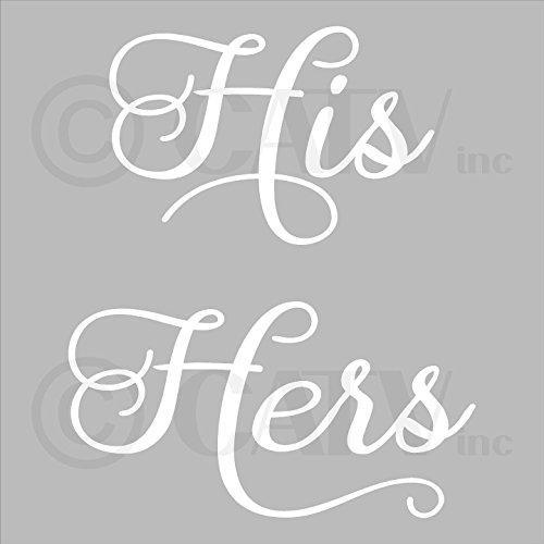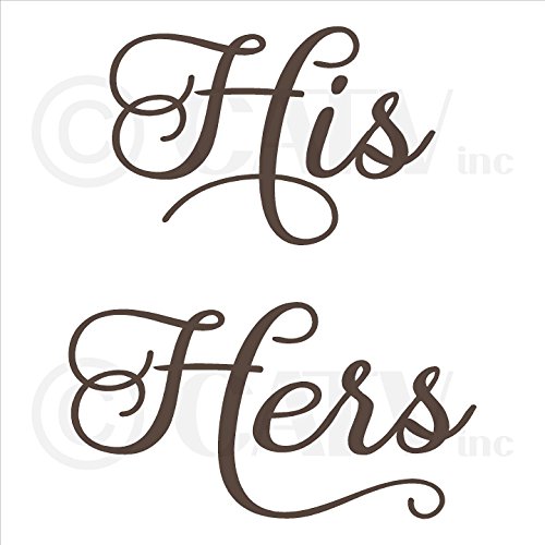 -. Feature : Two different sizes available and lots of fun colors - HIS 6"H x 9"L & HERS 6"H x 11"L - OR - HIS 3.5"H x 5"L & HERS 3.5"H x 6.5"L / All of our colors are a Matte Finish except for our Metallic colors which have a nice subtle shimmer to them but are not glossy. / PLEASE READ: Before clicking "Add to Cart" be sure that it says "Sold by Wall Sayings Vinyl Lettering". Any other sellers listed on this item are doing so illegally because WALL SAYINGS VINYL LETTERING is the manufacturer and we do NOT sell to re-sellers. We cannot guarantee the quality of counterfeit decals.Counterfeit decals can have jagged edges and either do not stick at all or they take the paint off your wall upon removal. We are the manufacturer and the ONLY seller of our products. / This decal is an original design/decal made with HIGH QUALITY vinyl ONLY by WALL SAYINGS VINYL LETTERING. It is made in the USA and only shipped by WALL SAYINGS VINYL LETTERING. This decal is NOT made in China, and will never be shipped by a 3rd party. We have been in business since 2004 and are one of the leading Vinyl Decal sellers in the world. / We have been in business since 2004 and are one of the leading Vinyl Decal sellers in the world. We provide detailed application instructions along with a customer service phone number in case you have any questions about application. Vinyl decals can be used in so many ways, they can be applied straight to a wall or be used on numerous surfaces including by not limited to; wood, metal, plastic, paper, ceramic, and glass. Decals are perfect for crafts, making almost any project easy for all.