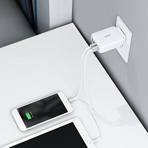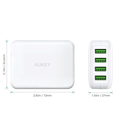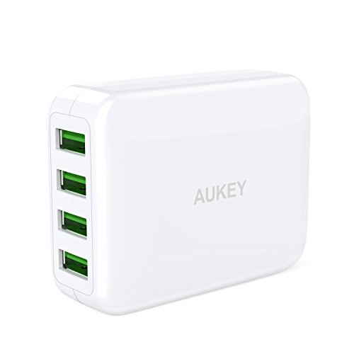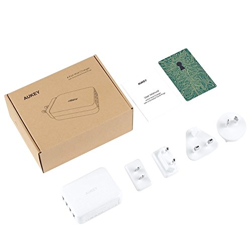 AUKEY USB Wall Charger with 4-Port and 4 Universal Plugs Travel Adapter for iPhone, iPad and More