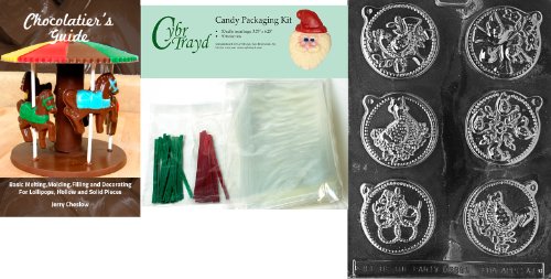 Cybrtrayd 12 Days of Christmas, 1 to 6 Chocolate Mold with Chocolatier's Bundle of 50 Cello Bags, 25 Green and 25 Red Twist Ties and Chocolatier's Guide