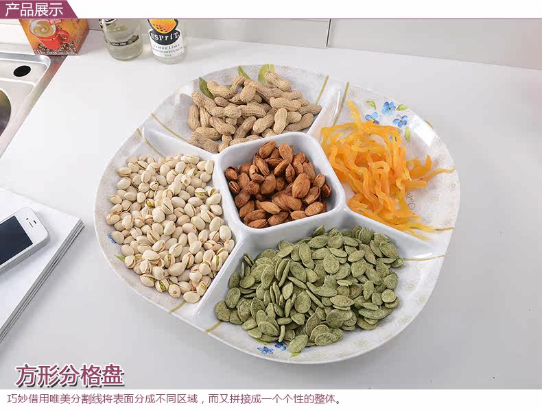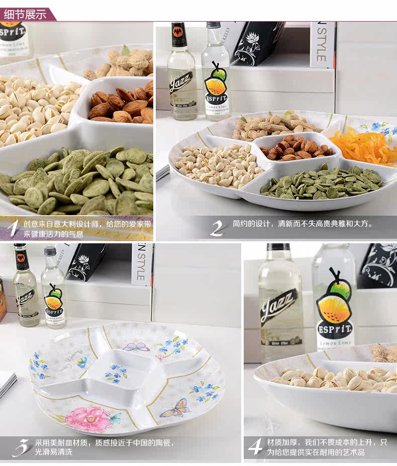 美耐皿分格时尚糖果盘 欧式多格干果盘 水果盘零食盘