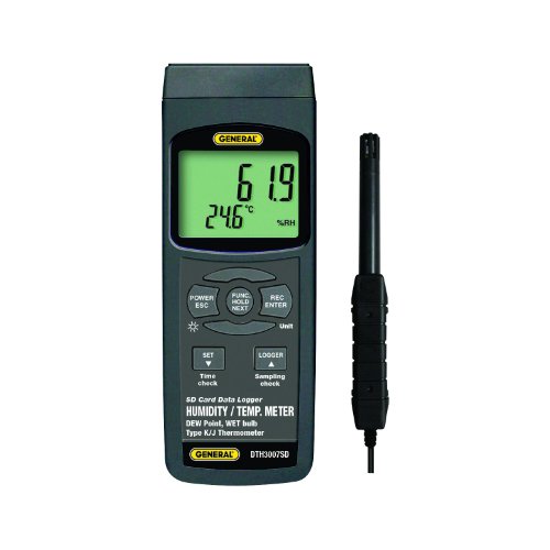 -. Feature : This is a new data logging thermo-hygrometer / Four-function instrument measures temperature/humidity, dew point, wet-bulb temperature and surface temperature / Big (2.5 in. diagonal) front-panel green backlit Lcd is easy to read / Displays maximum and minimum readings and holds any reading / Automatically logs measurements at sampling time settable from one second to one hour