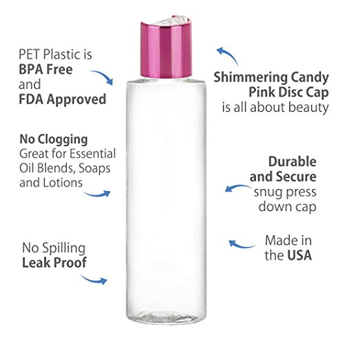 MoYo Natural Labs 3.4 oz Shimmering Pink Disc Cap Empty Travel bottle Squeezable BPA Free Travel Bottle Set Made in USA Set of 4