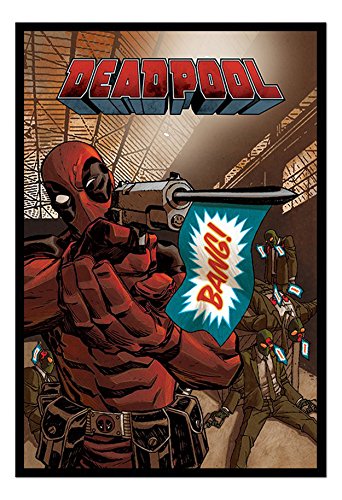 -. Title : Deadpool Gun Bang Poster Magnetic Notice Board Black Framed - 96.5 x 66 cms (Approx 38 x 26 inches)