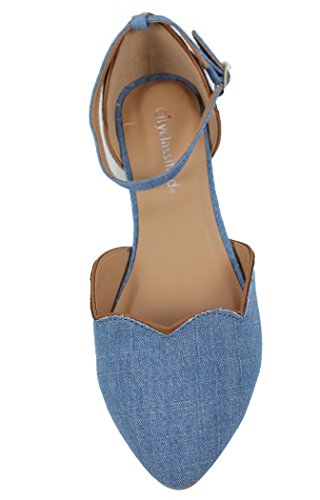 City Classified Women's Curvy Round Closed Toe Ankle Strap Flat Sandal